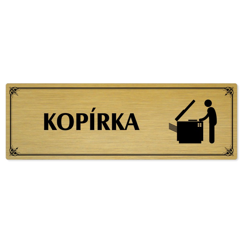 Popiska na dveře “Kopírka“ Vyrobeno z broušeného lakovaného hliníku o síle 0,6 mm Rozměr je 200x66mm a 240x79mm Povrch je pololesklý  Obrázek či text je tepelně-chemicky natištěn do materiálu, a nelze ho odstranit. Cedulka je z výroby podlepena oboustrannou  páskou pro snadnou montáž. Požadovan... celý popis