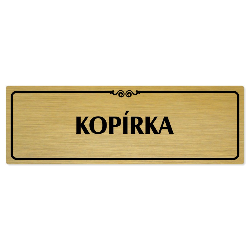 Popiska na dveře “Kopírka“ Vyrobeno z broušeného lakovaného hliníku o síle 0,6 mm Rozměr je 200x66mm a 240x79mm Povrch je pololesklý  Obrázek či text je tepelně-chemicky natištěn do materiálu, a nelze ho odstranit. Cedulka je z výroby podlepena oboustrannou  páskou pro snadnou montáž. Požadovan... celý popis