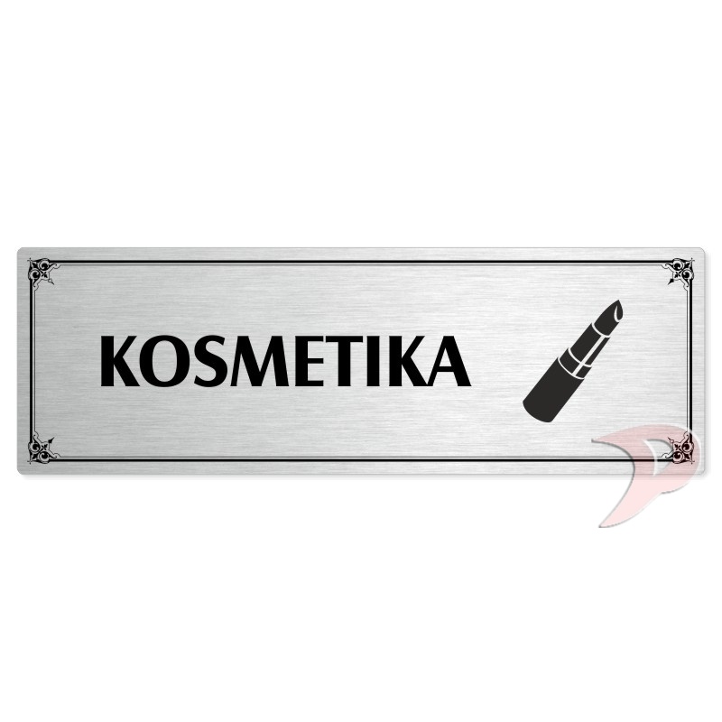 Kosmetika, 200x66mm, stříbrná popiska s okrasným rámečkem