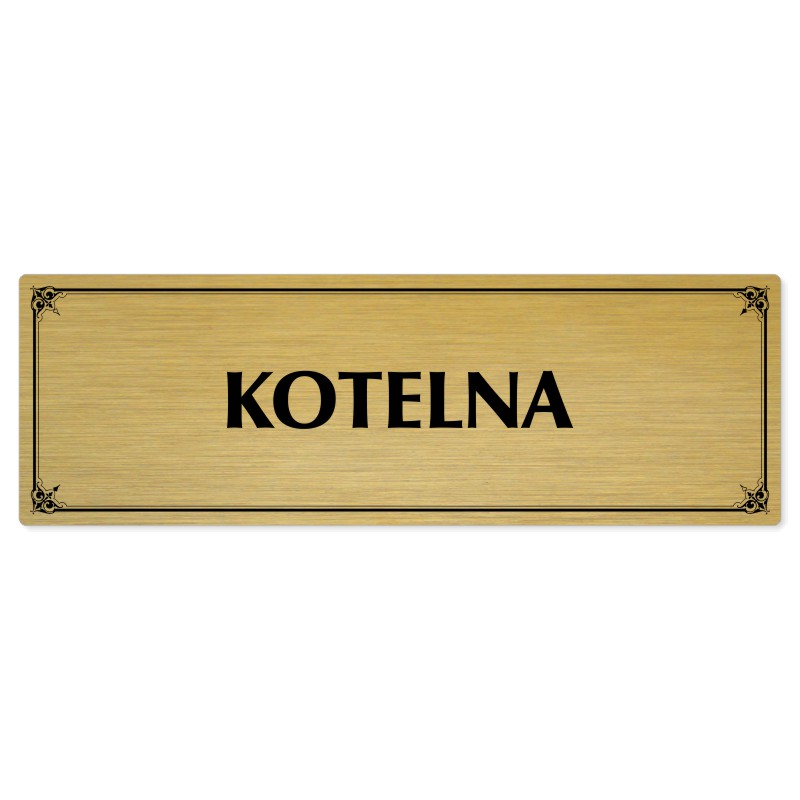 Kotelna, 240x79mm, zlatá popiska s okrasným rámečkem