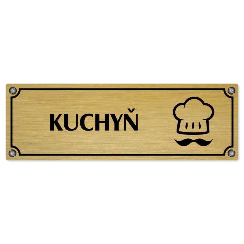Popiska na dveře “Kuchyň“ Vyrobeno z broušeného lakovaného hliníku o síle 0,6 mm Rozměr je 200x66mm a 240x79mm Povrch je pololesklý  Obrázek či text je tepelně-chemicky natištěn do materiálu, a nelze ho odstranit. Cedulka je z výroby podlepena oboustrannou  páskou pro snadnou montáž. Požadovaný... celý popis