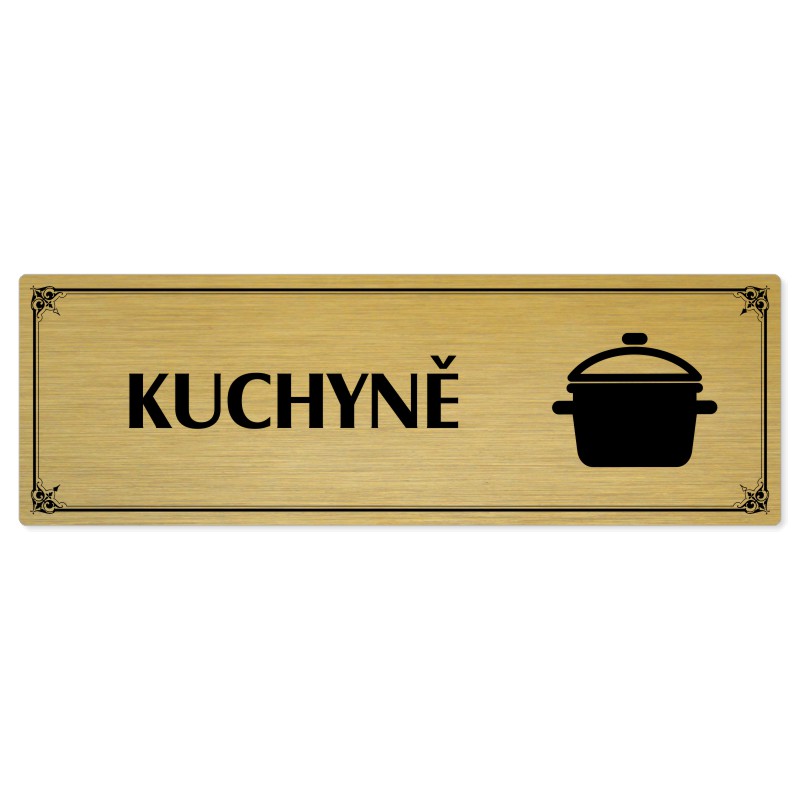 Kuchyně, 200x66mm, zlatá popiska s okrasným rámečkem