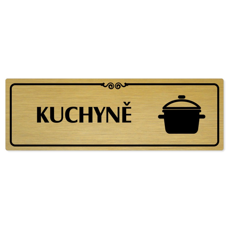 Kuchyně, 200x66mm, zlatá popiska s ozdobou uprostřed