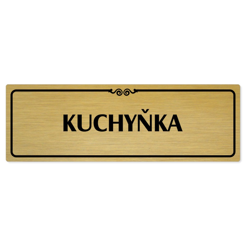 Kuchyňka, 200x66mm, zlatá popiska s ozdobou uprostřed