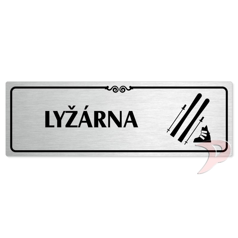 Lyžárna, 240x79mm, stříbrná popiska s ozdobou uprostřed