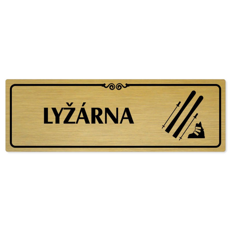 Lyžárna, 240x79mm, zlatá popiska s ozdobou uprostřed