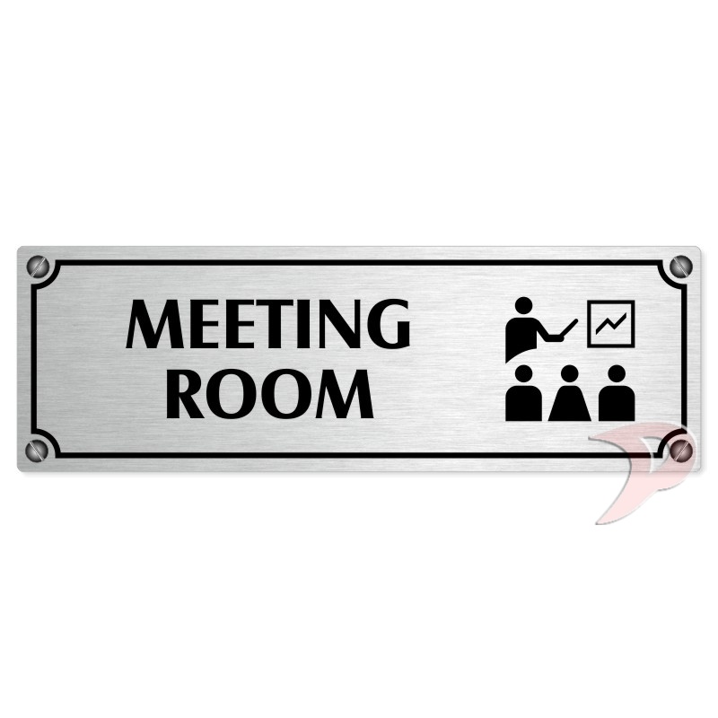 Meeting room, 200x66mm, stříbrná popiska s imitacemi šroubků