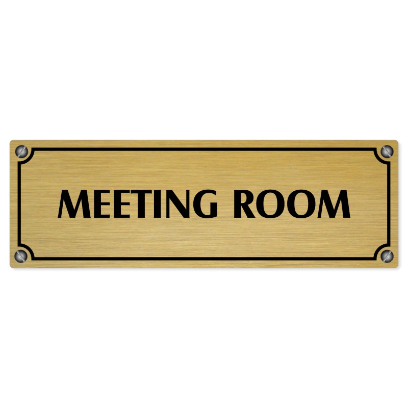 Meeting room, 200x66mm, zlatá popiska s imitacemi šroubků