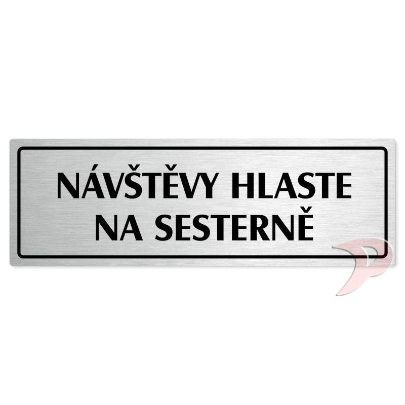 Návštěvy hlaste, 240x79mm, stříbrná popiska s rámečkem