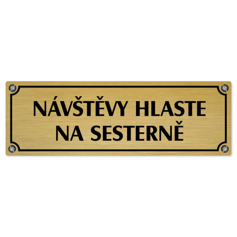 Návštěvy hlaste, 240x79mm, zlatá popiska s imitacemi šroubků