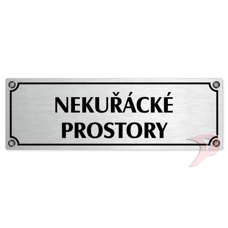 Nekuřácké prostory, 200x66mm, stříbrná popiska s imitacemi šroubků