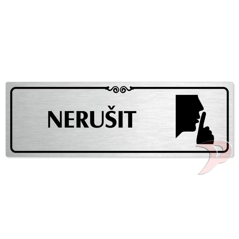 Nerušit, 240x79mm, stříbrná popiska s ozdobou uprostřed
