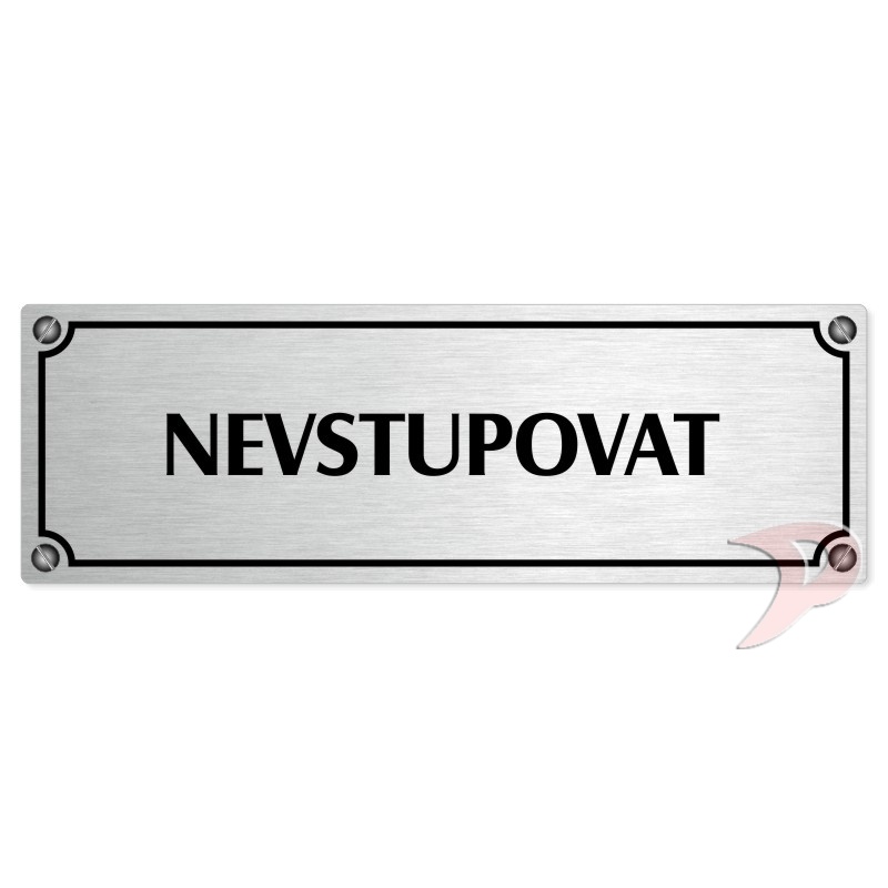 Nevstupovat, 200x66mm, stříbrná popiska s imitacemi šroubků