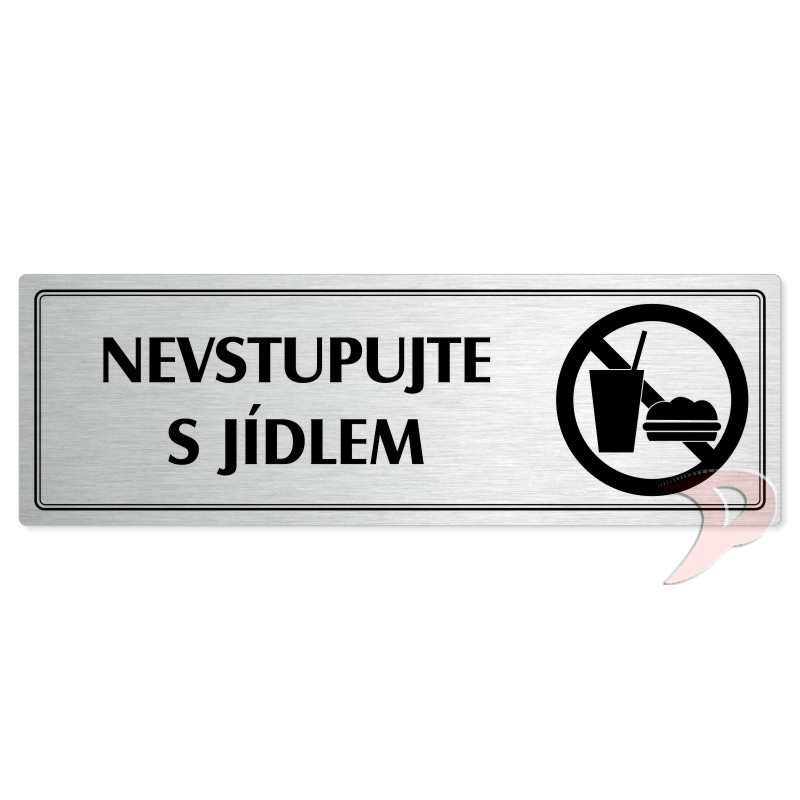 Nevstupujte s jídlem, 240x79mm, stříbrná popiska s dvojtým rámečkem