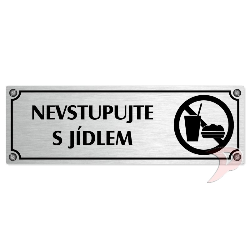 Nevstupujte s jídlem, 240x79mm, stříbrná popiska s imitacemi šroubků