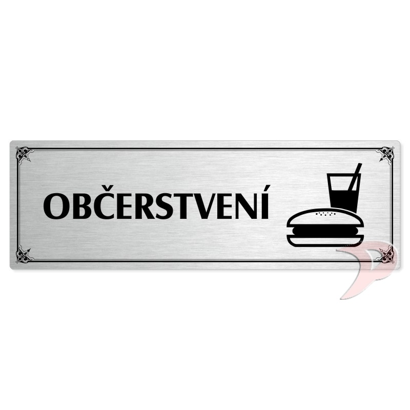 Občerstvení, 200x66mm, stříbrná popiska s okrasným rámečkem