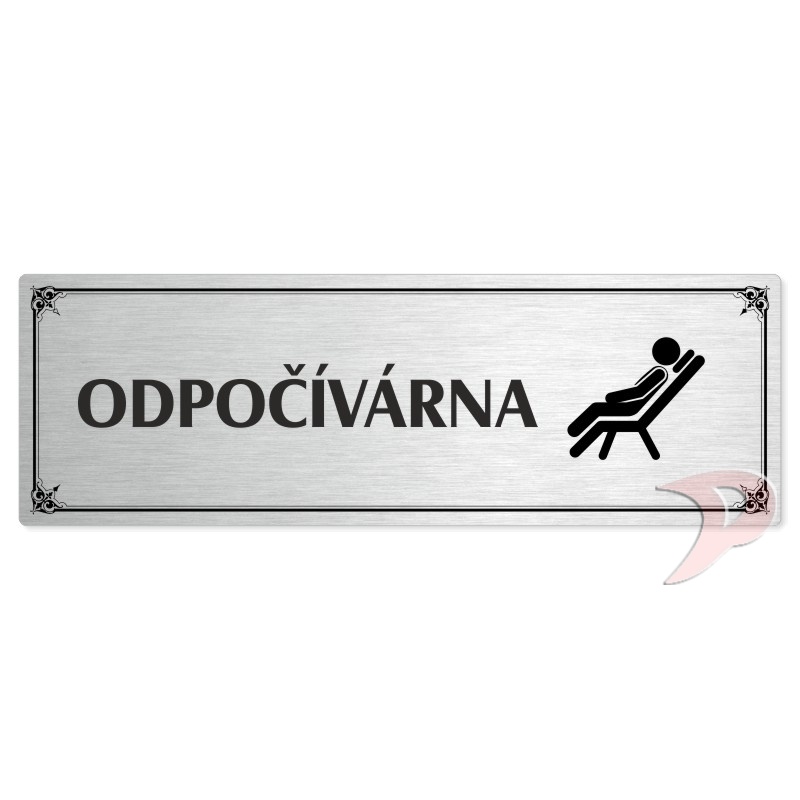 Odpočívárna, 200x66mm, stříbrná popiska s okrasným rámečkem