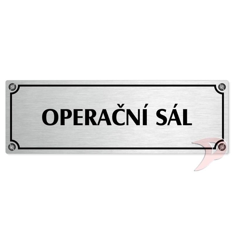 Operační sál, 200x66mm, stříbrná popiska s imitacemi šroubků