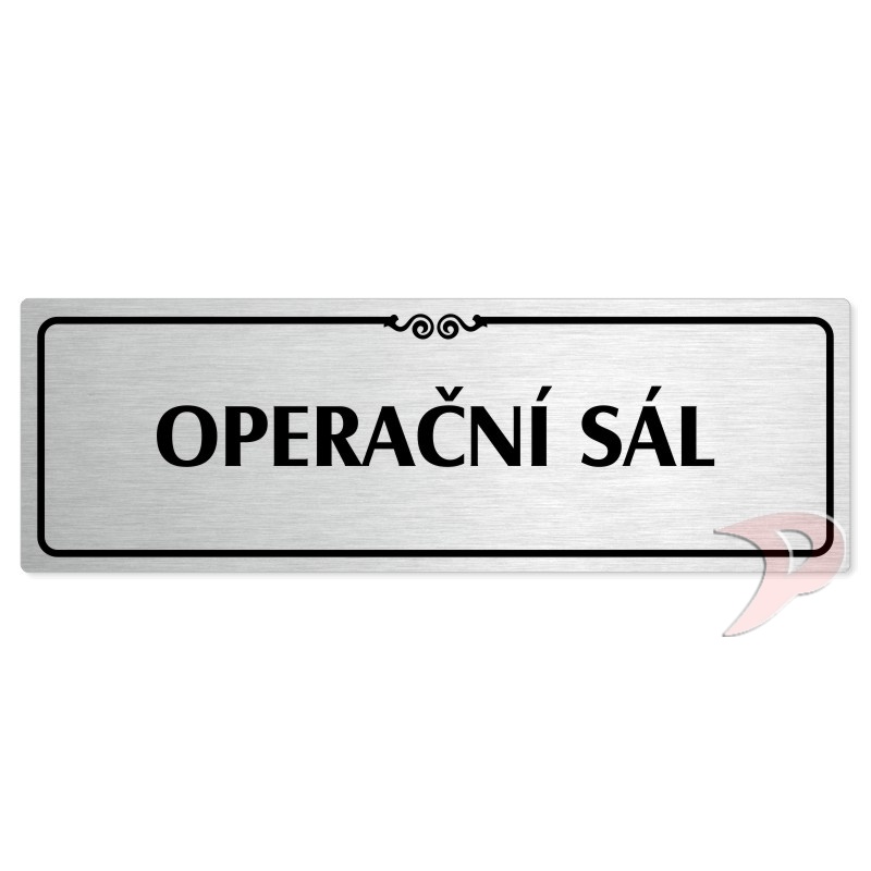 Operační sál, 200x66mm, stříbrná popiska s ozdobou uprostřed