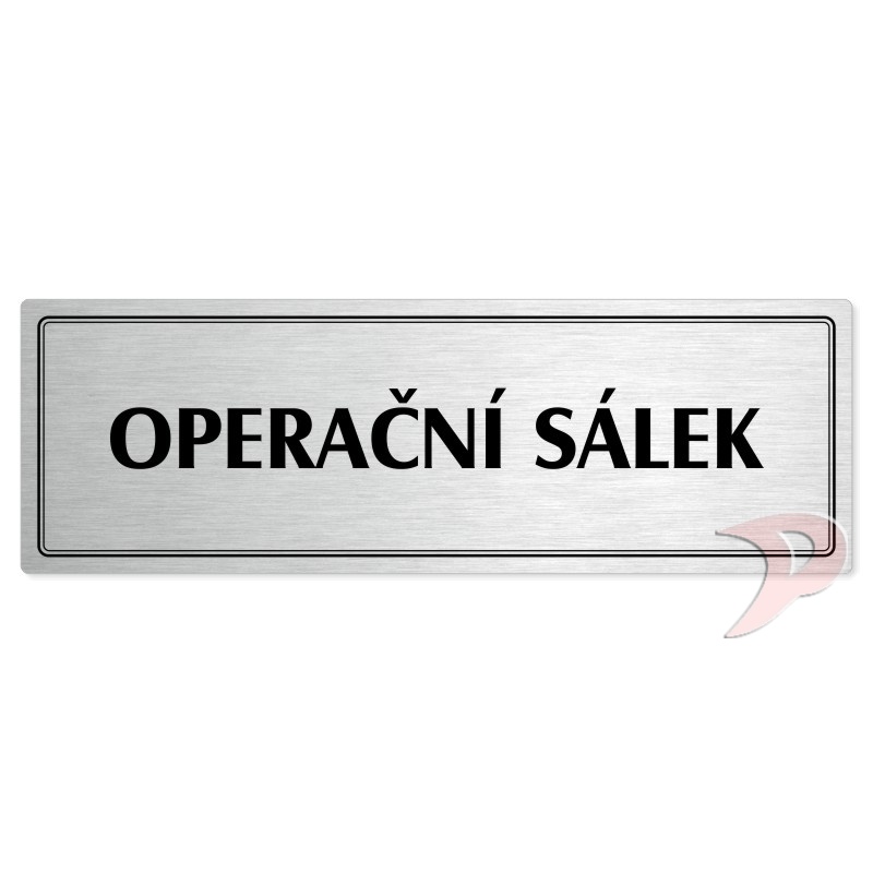 Operační sálek, 200x66mm, stříbrná popiska s dvojtým rámečkem