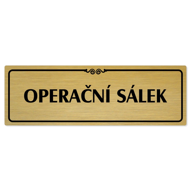 Operační sálek, 200x66mm, zlatá popiska s ozdobou uprostřed