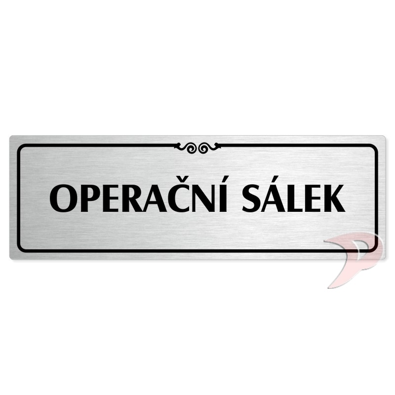 Operační sálek, 240x79mm, stříbrná popiska s ozdobou uprostřed