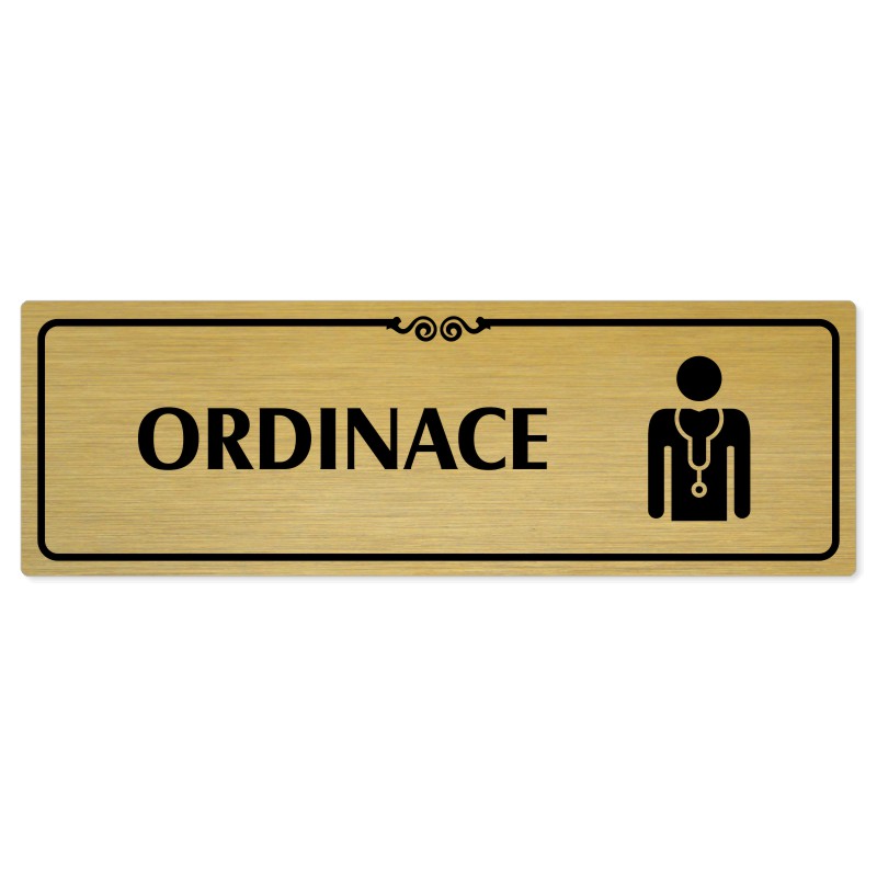 Ordinace, 240x79mm, zlatá popiska s ozdobou uprostřed