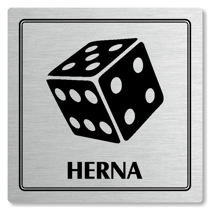 Cedulka na dveře “Herna“ Vyrobeno z broušeného lakovaného hliníku o síle 0,6 mm Rozměr je 80x80mm, 100x100mm, 118x118mm a 148x148mm Povrch je pololesklý  Obrázek či text je tepelně-chemicky natištěn do materiálu, a nelze ho odstranit. Cedulka je z výroby podlepena oboustrannou  páskou pro snadn... celý popis