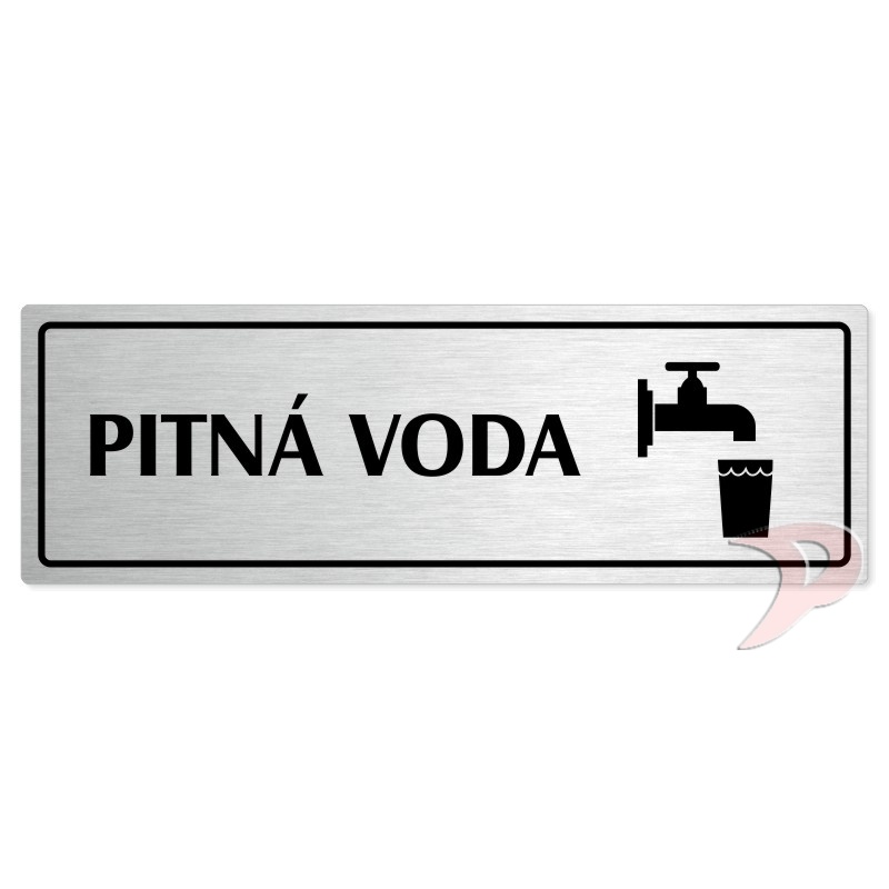 Pitná voda, 200x66mm, stříbrná popiska s rámečkem