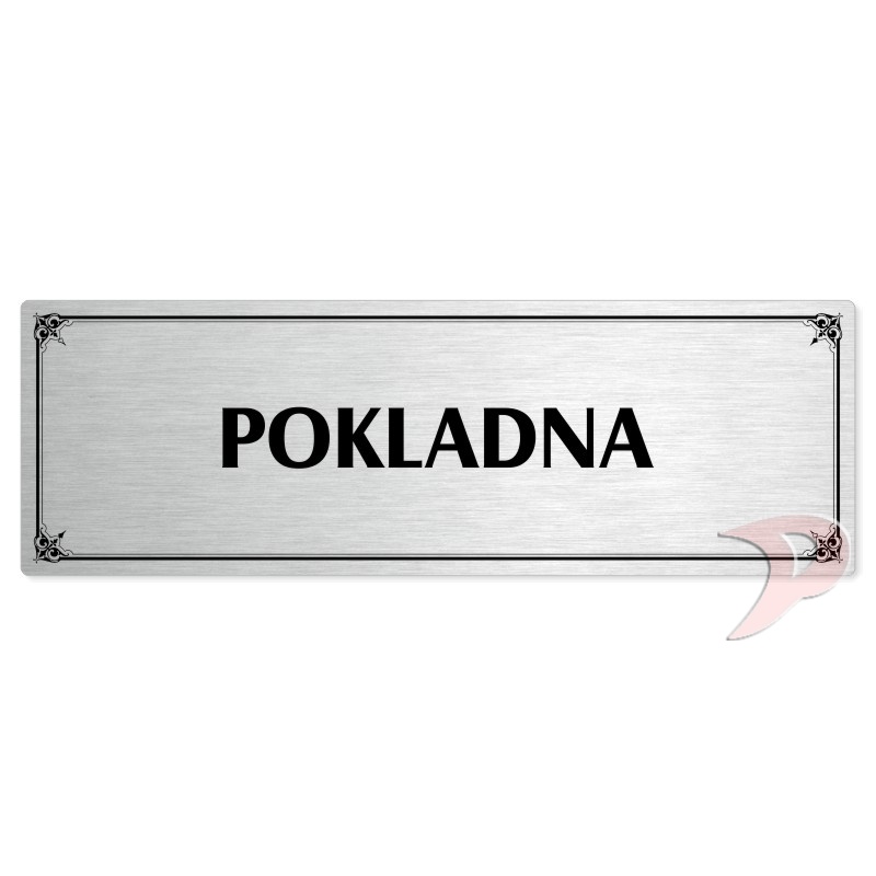 Pokladna, 240x79mm, stříbrná popiska s okrasným rámečkem
