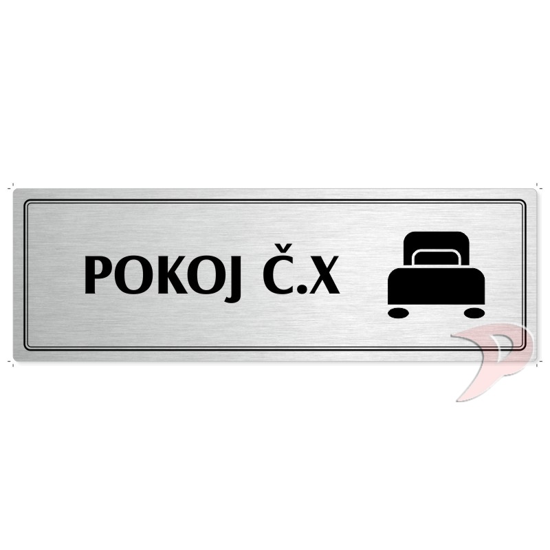 Pokoj č., 200x66mm, stříbrná popiska s dvojtým rámečkem