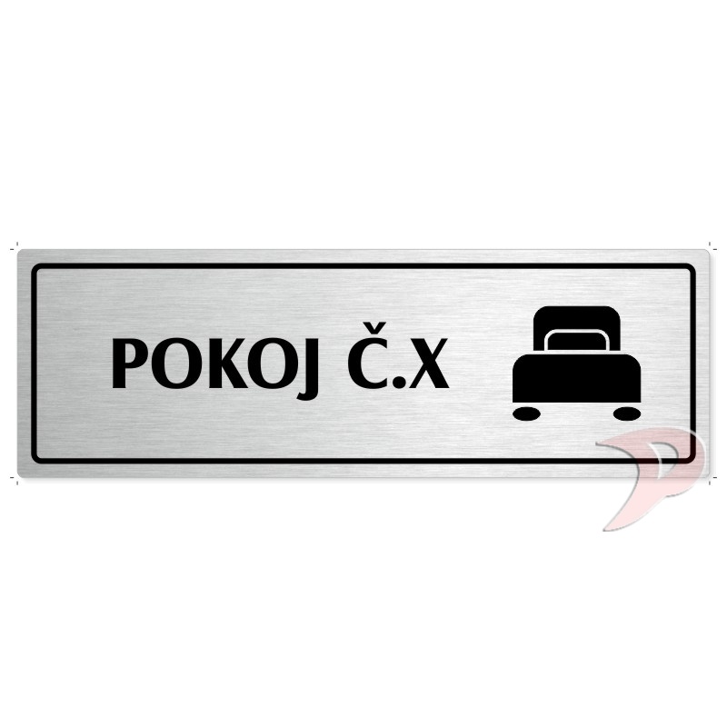 Pokoj č., 200x66mm, stříbrná popiska s rámečkem