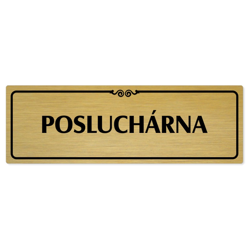 Posluchárna, 200x66mm, zlatá popiska s ozdobou uprostřed