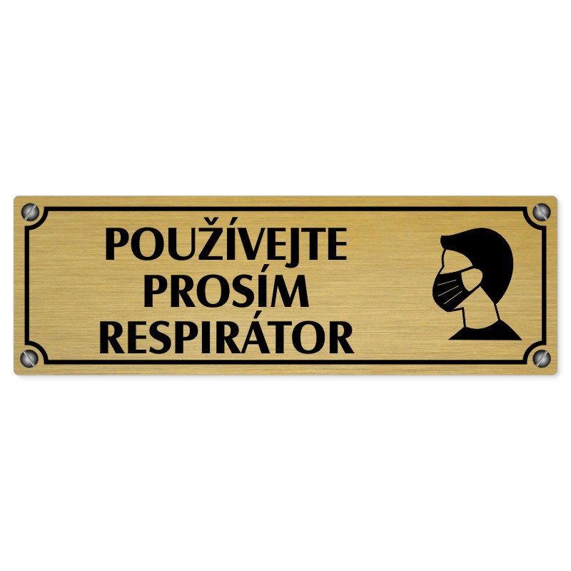 Použijte prosím respirátor, 240x79mm, zlatá popiska s imitacemi šroubků