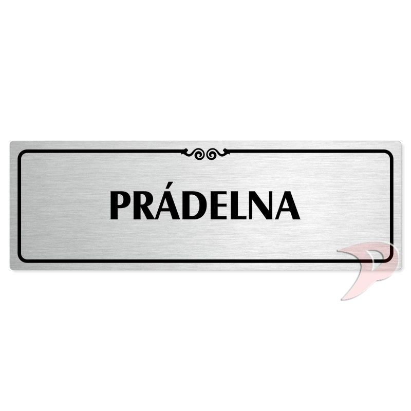 Prádelna, 200x66mm, stříbrná popiska s ozdobou uprostřed
