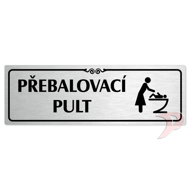 Přebalovací pult, 200x66mm, stříbrná popiska s ozdobou uprostřed
