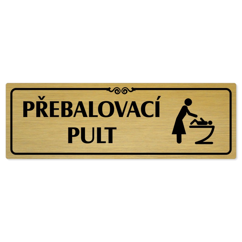 Přebalovací pult, 200x66mm, zlatá popiska s ozdobou uprostřed