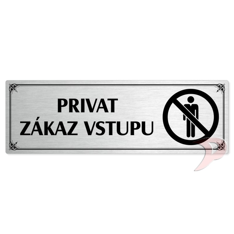 Privat, 200x66mm, stříbrná popiska s okrasným rámečkem