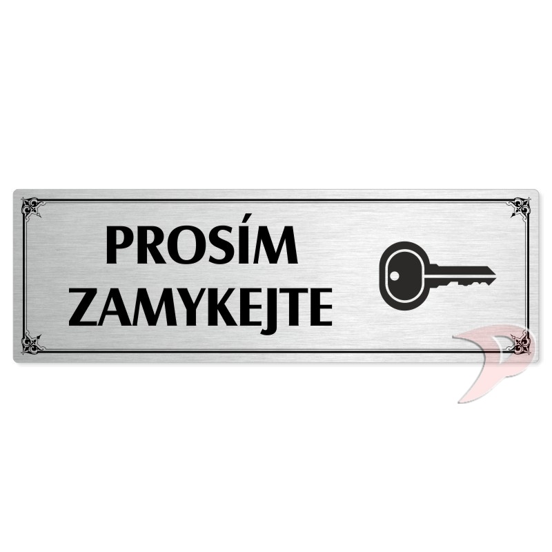 Prosím zamykejte, 240x79mm, stříbrná popiska s okrasným rámečkem299 Kč247 Kč bez DPH