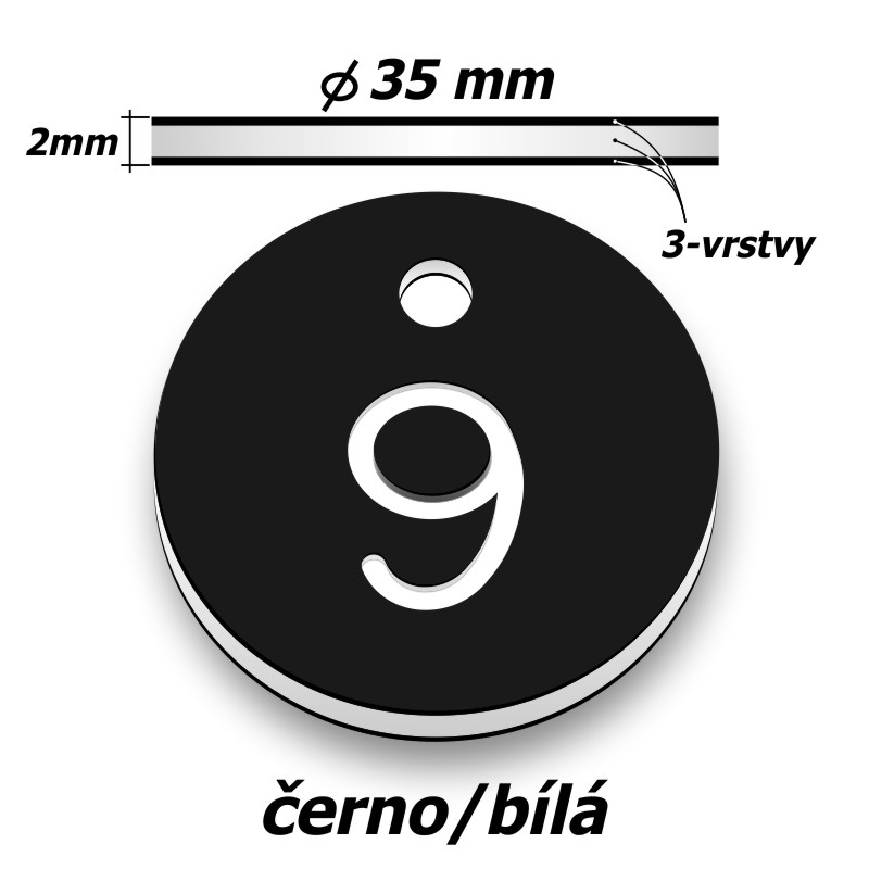 - Číslo na klíče je vyrobené z 2 mm 3-vrstvého PVC určeného na výrobu klíčenek. (často používané v bazénech)