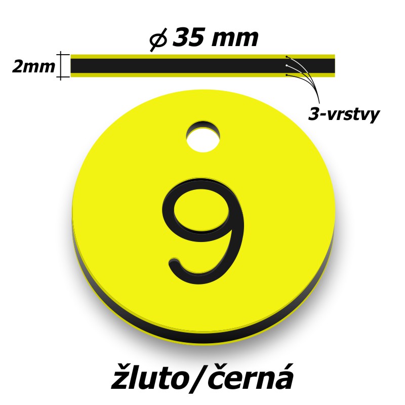 - Číslo na klíče je vyrobené z 2 mm 3-vrstvého PVC určeného na výrobu klíčenek. (často používané v bazénech)