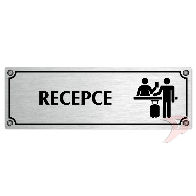 Recepce, 240x79mm, stříbrná popiska s imitacemi šroubků