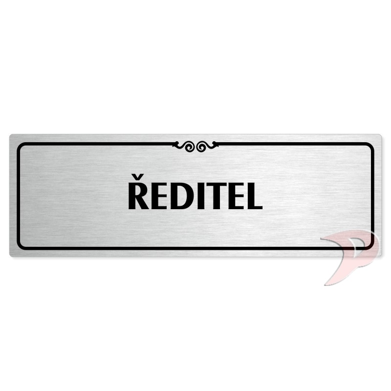 Ředitel, 200x66mm, stříbrná popiska s ozdobou uprostřed