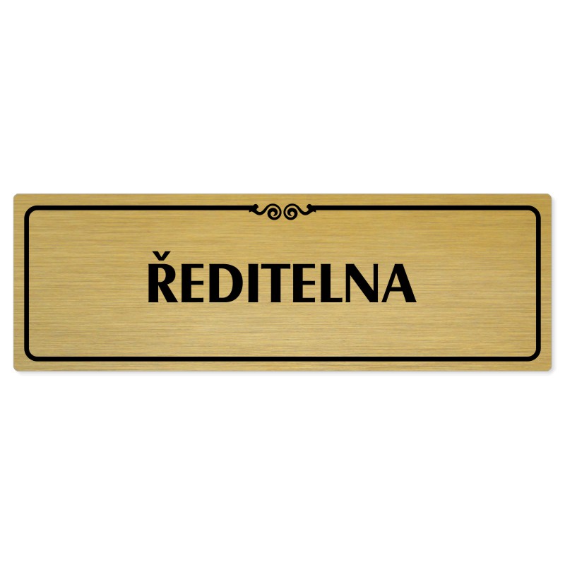 Ředitelna, 200x66mm, zlatá popiska s ozdobou uprostřed