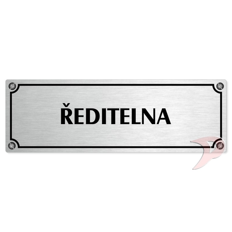 Ředitelna, 240x79mm, stříbrná popiska s imitacemi šroubků