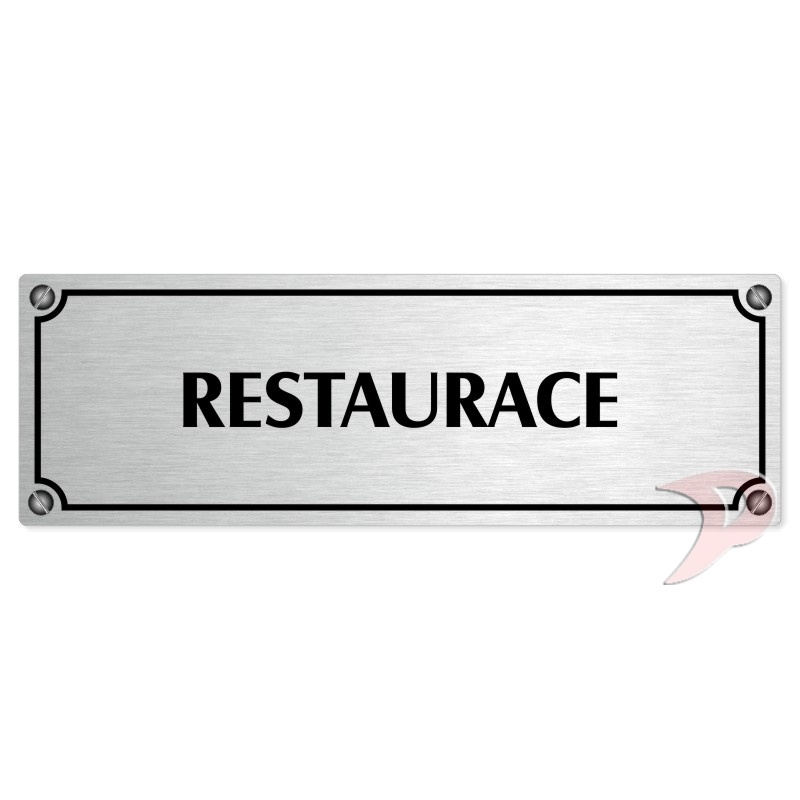 Restaurace, 200x66mm, stříbrná popiska s imitacemi šroubků
