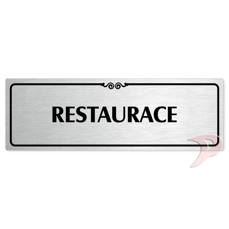 Restaurace, 240x79mm, stříbrná popiska s ozdobou uprostřed