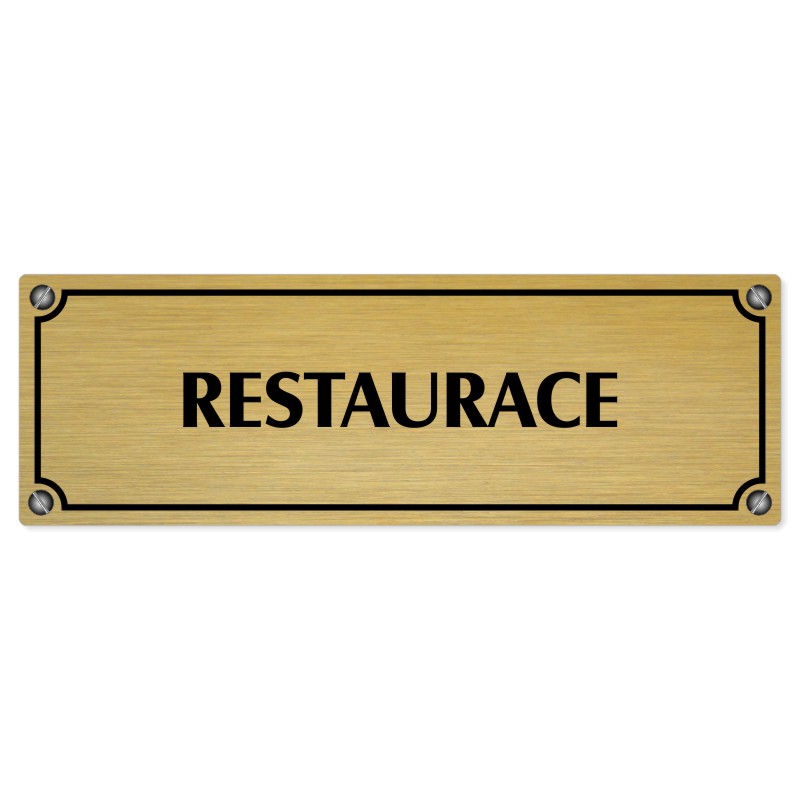 Restaurace, 240x79mm, zlatá popiska s imitacemi šroubků