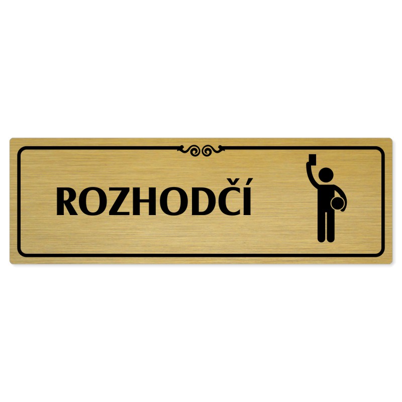 Rozhodčí, 200x66mm, zlatá popiska s ozdobou uprostřed