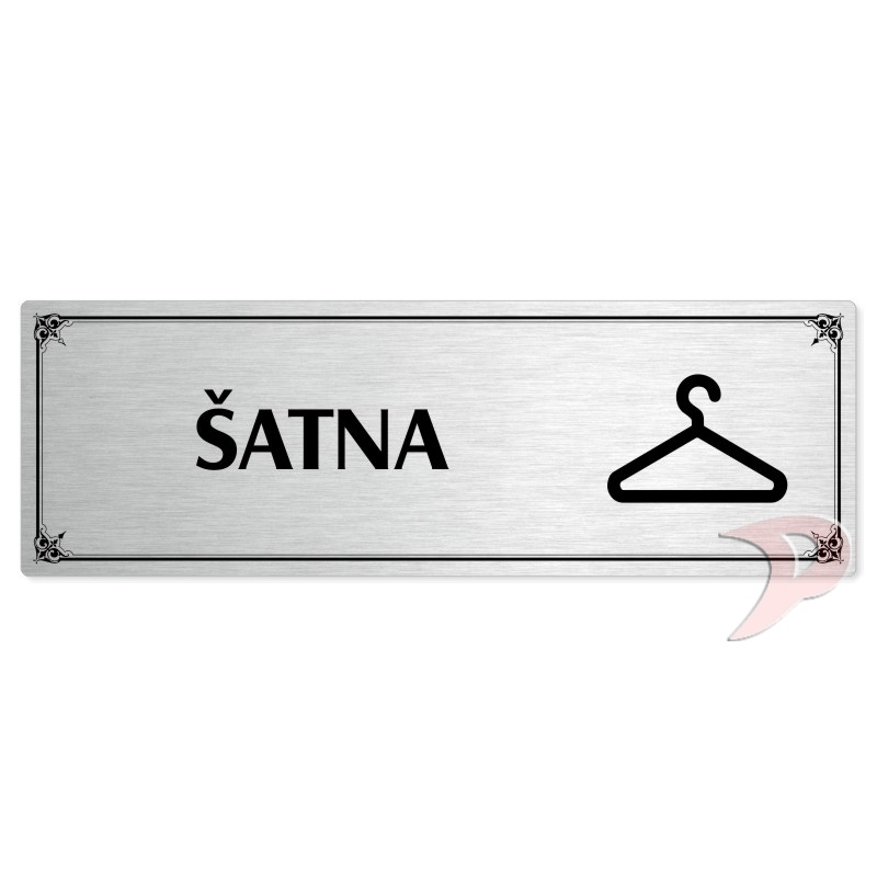 Šatna, 200x66mm, stříbrná popiska s okrasným rámečkem